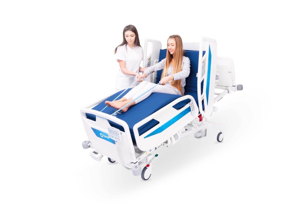 O bezpečnosť pacienta sa starajú spoľahlivé pohonné a riadiace jednotky, nízka pozícia ložnej plochy a maximálna nosnosť až 250 kg. Certifikovaný vážiaci systém zabudovaný do ošetrovateľskej postele umožňuje jednoduchý výber vhodnej dávky lieku, zatiaľ čo batéria fCharge™ umožňuje obsluhu pacienta počas transportu alebo v prípade výpadku prúdu. Funkcie ako systém núdzového volania a podsvietenie spodnej časti postele prispievajú k pohodliu a pocitu bezpečia pacienta. Posteľ má senzory, ktoré zabraňujú bočným náklonom pri sklopení bočníc.